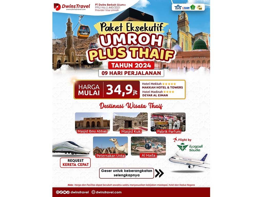 PAKET UMRAH EXECUTIVE + CITY TOUR THAIF